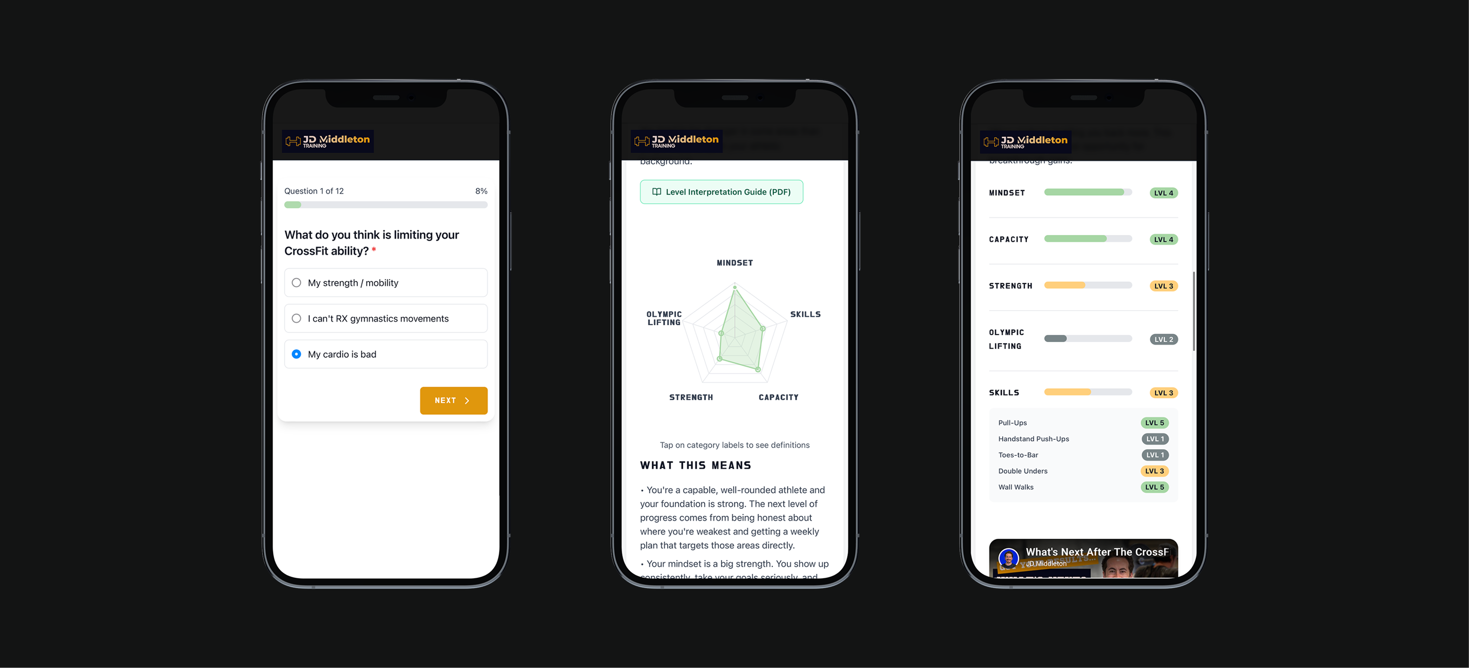 Between the client and myself, we brought over a decade of CrossFit coaching experience. We used that to define what different levels of athletes actually look like in practice.